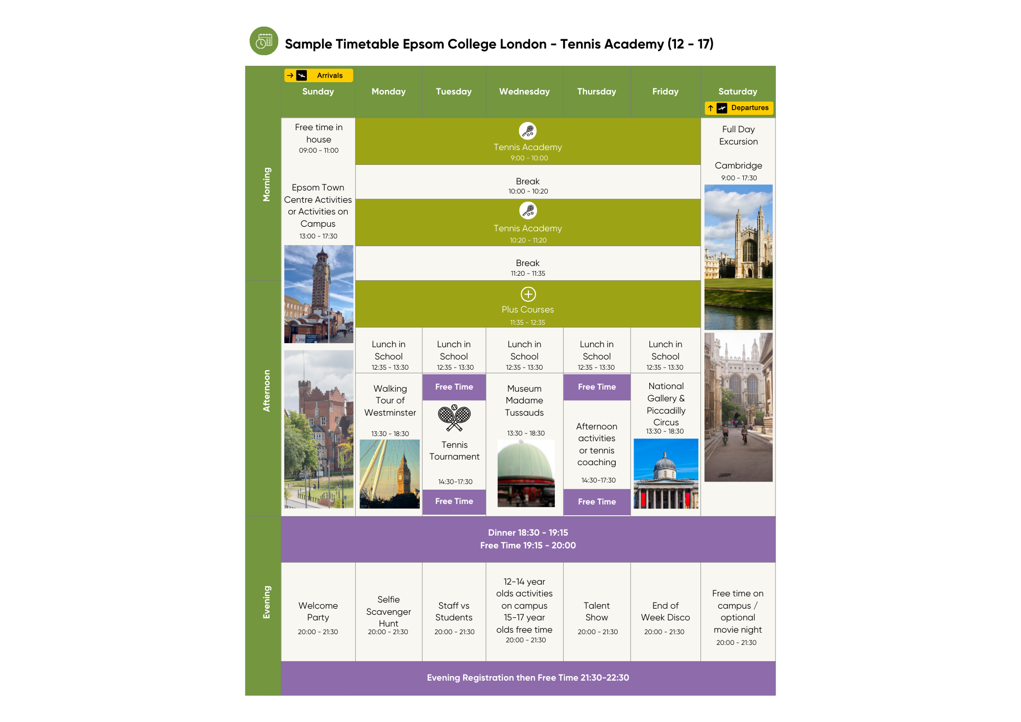 On Sundays students can explore the historic market town of Epsom or enjoy some relaxing activities on campus.