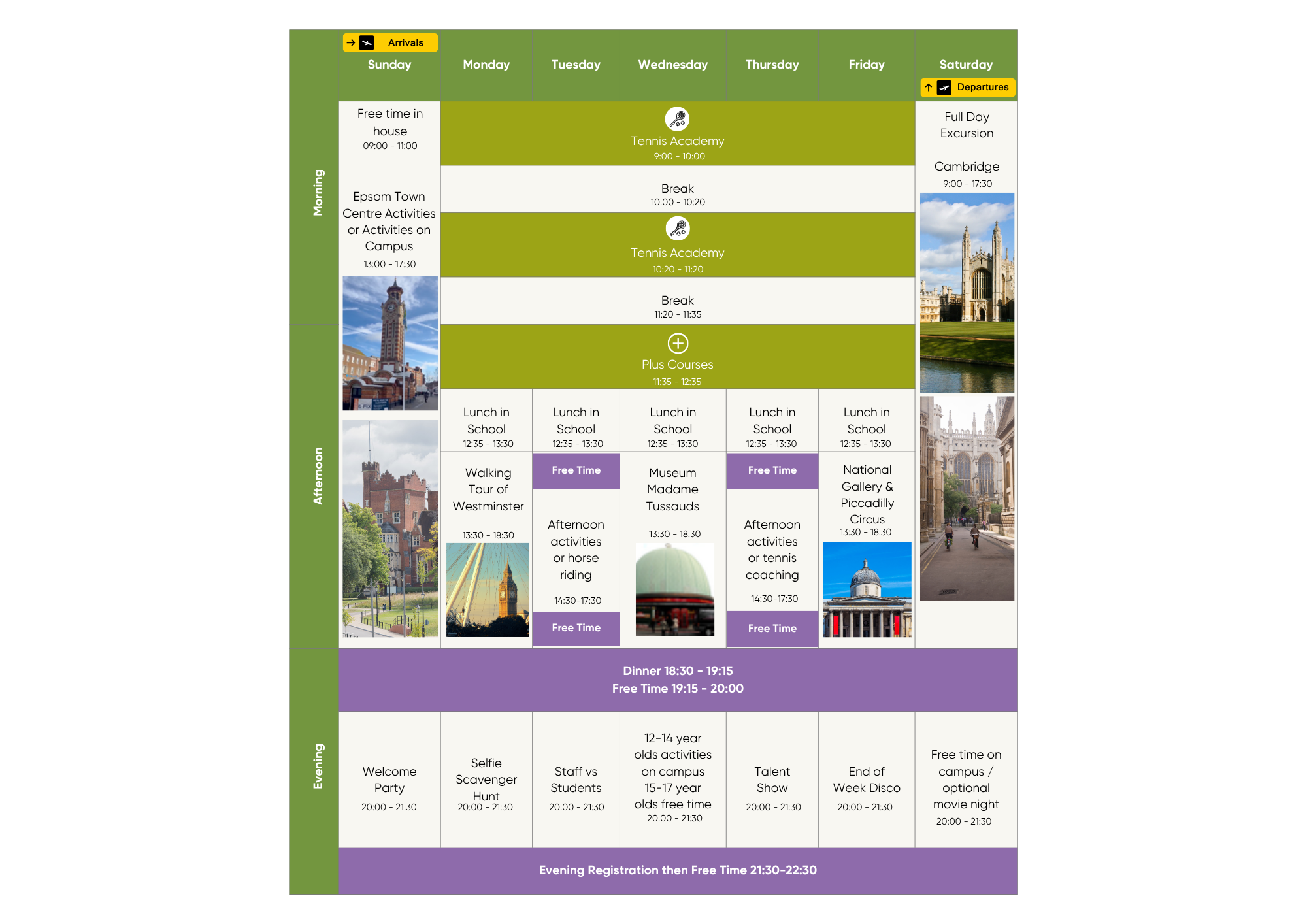 Epsom Tennis Sample Timetable