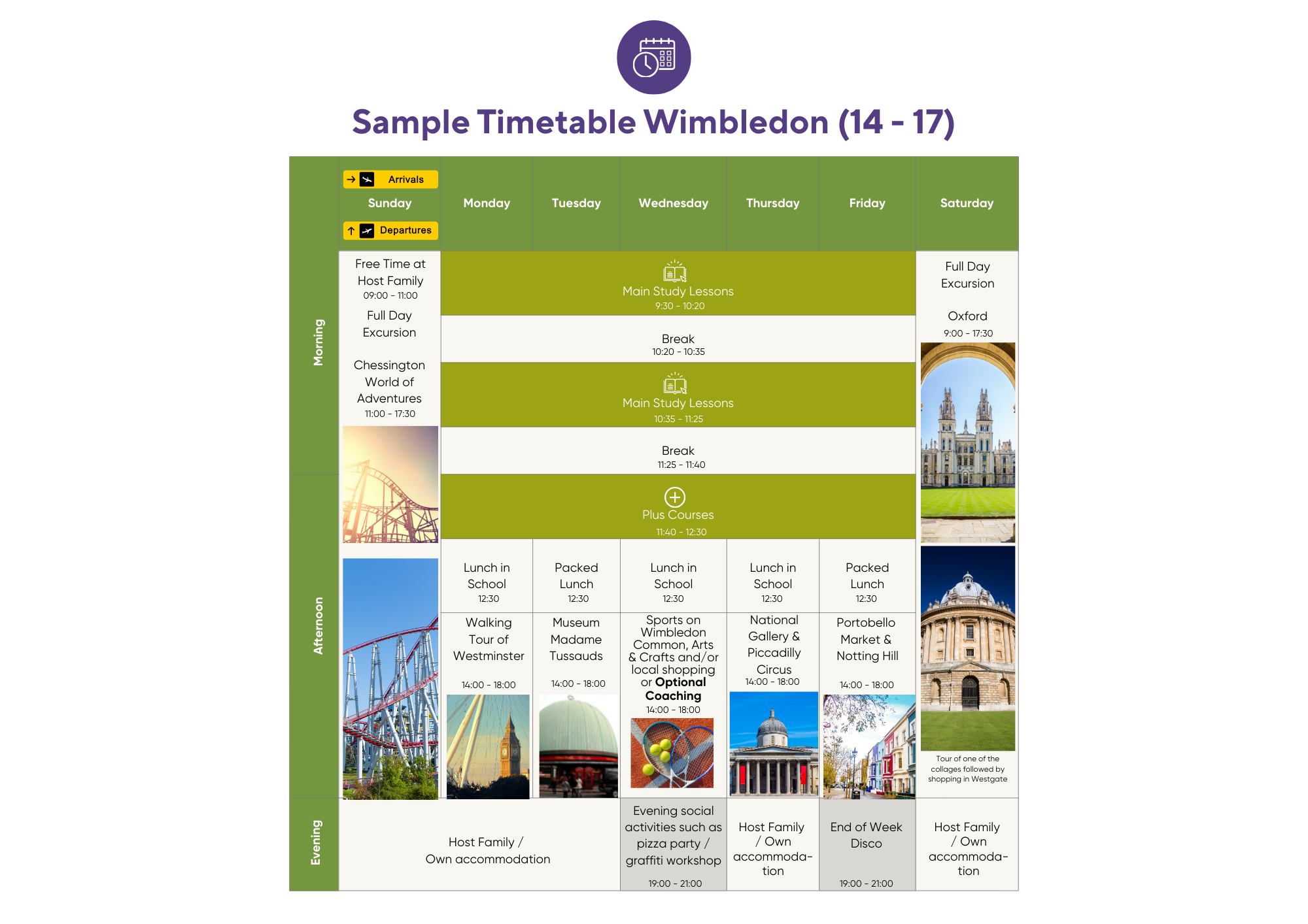 This English course for juniors is located in great premises in the heart of Wimbledon, only a few minutes from the main school. Our exciting Wimbledon-based programme combines the study of English with other topics and includes visits to the centre of London on most afternoons.